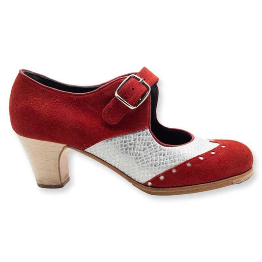 Flamenco Footwear - Buckle combination, red suede and fantasy