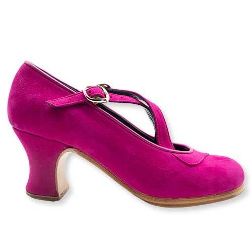 Classic flamenco footwear with two crossed straps on the instep with buckles on the sides.