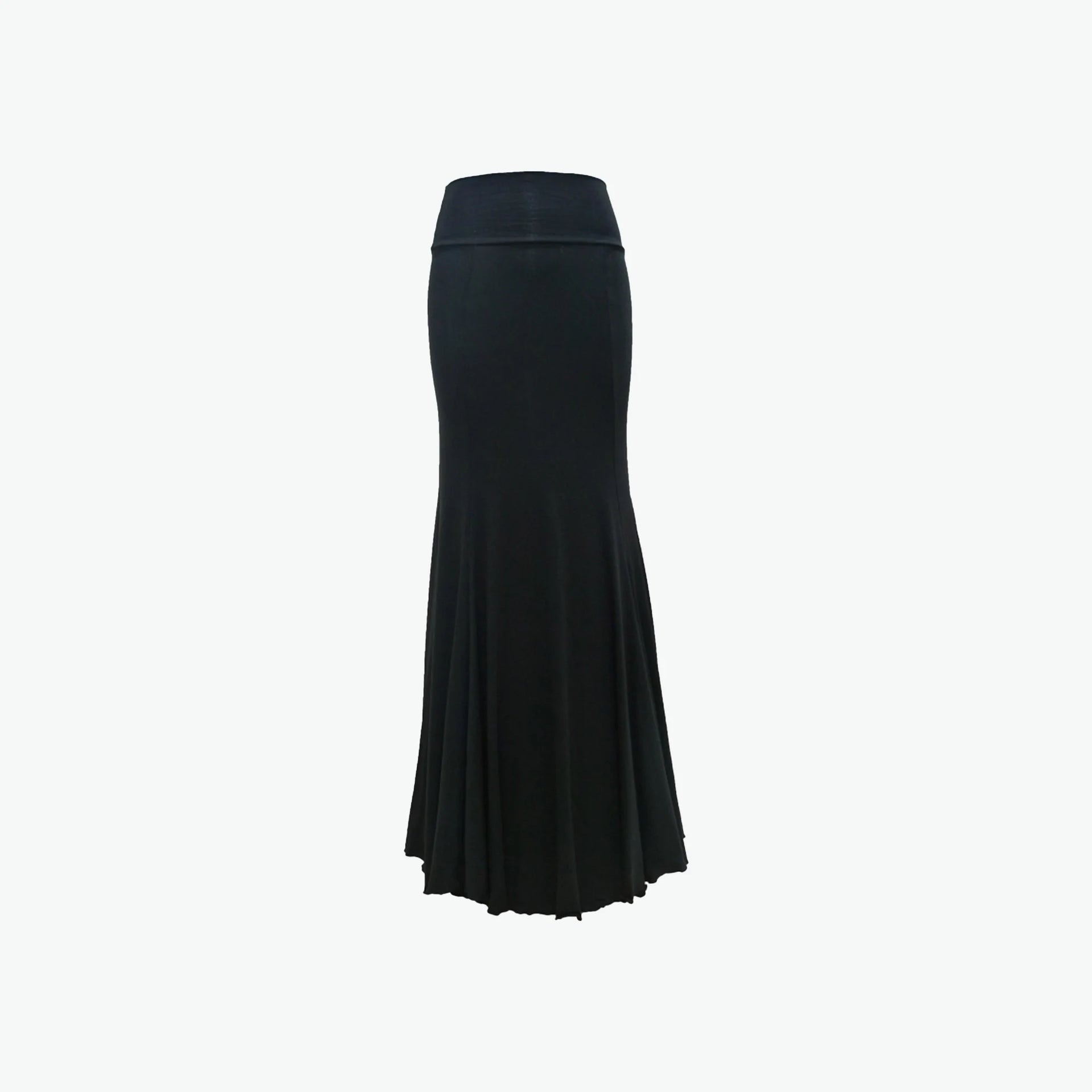 Talla L y XL - Falda sencilla, ajustada a las caderas y con vuelo. Confeccionada en punto de viscosa, material orgánico muy agradable. La falda es ideal para ensayos y clases; es cómoda y ligera, y realza tu figura a la vez que te da libertad de movimiento.
