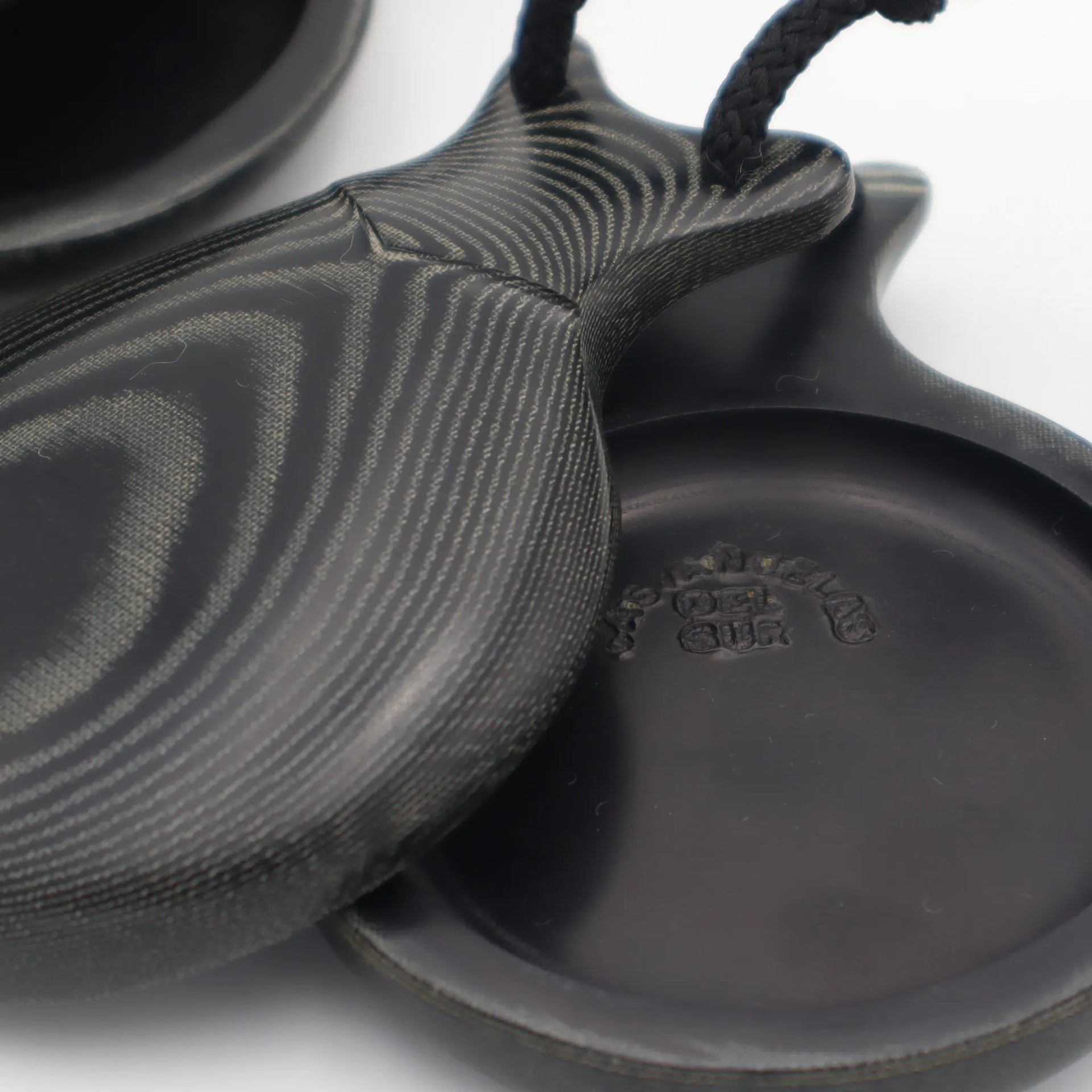 Este modelo de castañuelas profesionales se realiza con láminas de papel y algodón impregnadas en resina. Todo el proceso de fabricación es 100% artesanal y vienen grabadas con el emblema de nuestra marca: CASTAÑUELAS DEL SUR.