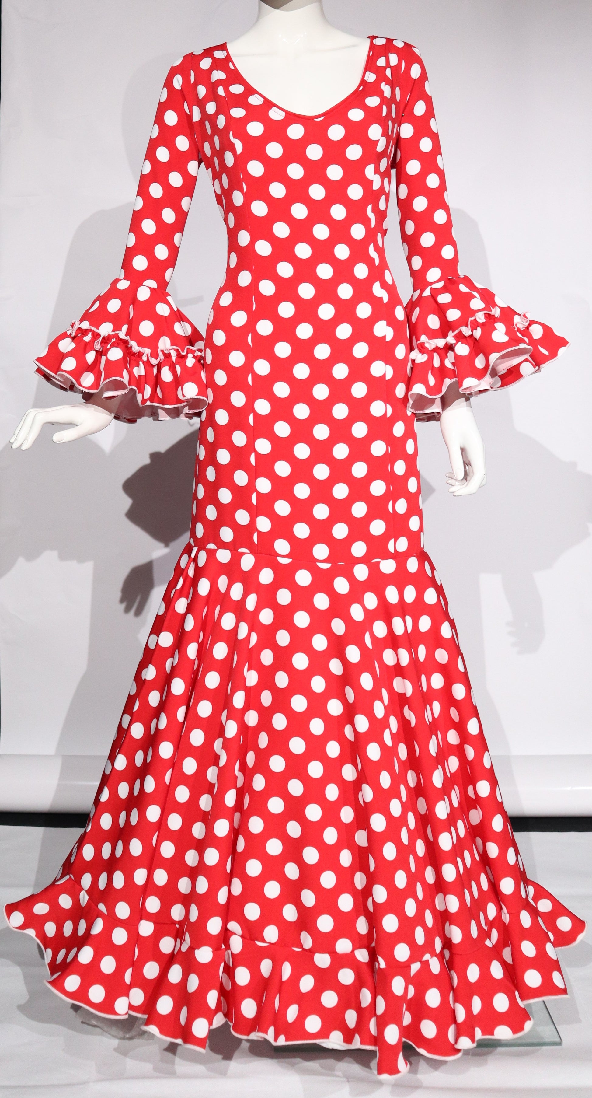 Dos modelos: Traje rojo con lunares en negro